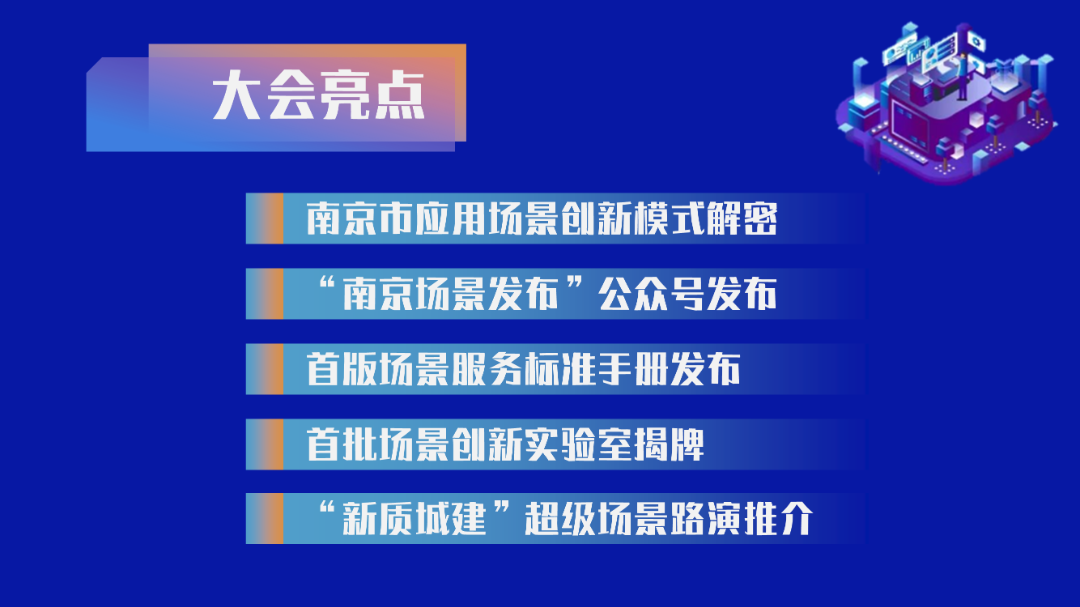 “南京场景发布”公众号于会上正式上线。作为全市场景综合服务平台,包含场景活动、场景研究、场景伴行三大模块,未来将提供应用场景研究、征集、发布、对接、推广等全生命周期服务。集成全市场景信息,实现高流量平台到高价值产业的转化。