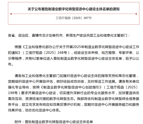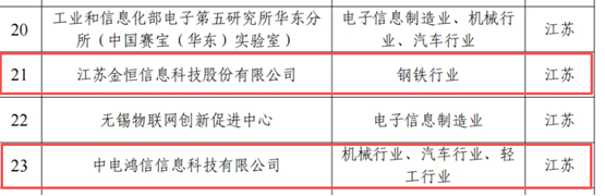 工业和信息化部近日公布首批制造业数字化转型促进中心建设主体名单,南京市2家企业江苏金恒信息科技股份有限公司(以下简称金恒科技)、中电鸿信信息科技有限公司(以下简称中电鸿信)成功入选,入选总数占江苏省1/2、全省第一,凸显南京市在制造业数字化转型中服务商资源丰富、服务生态健全、资源要素集聚的比较优势。