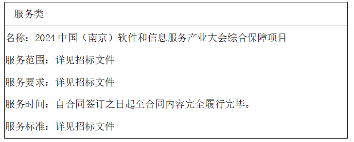 二、项目名称: 2024中国(南京)软件和信息服务产业大会综合保障项目