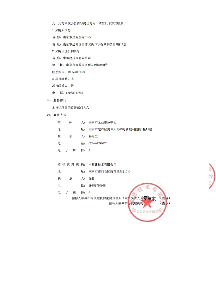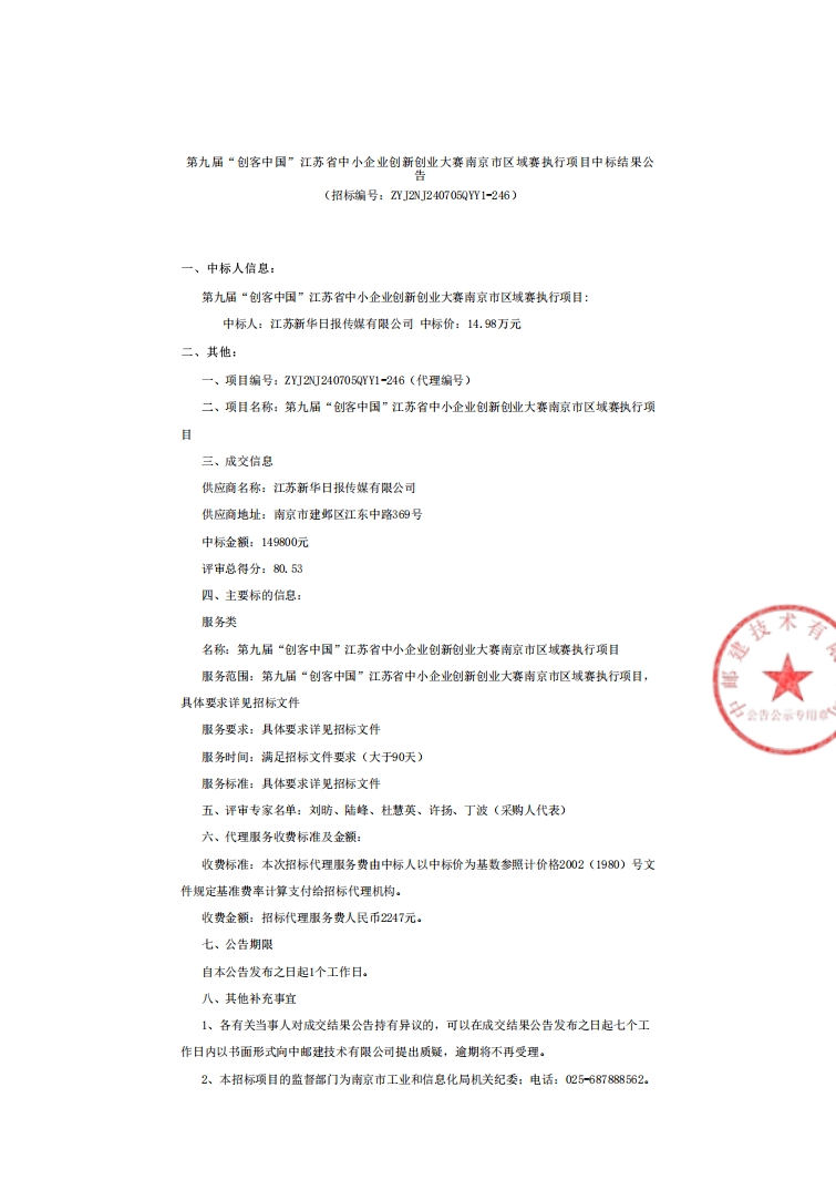 第九届“创客中国”江苏省中小企业创新创业大赛南京市区域赛执行项目中标结果公告
