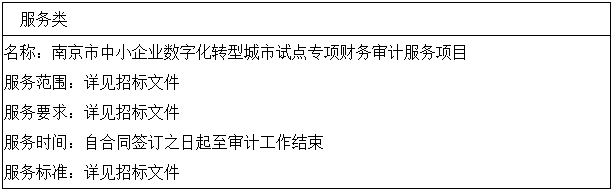 二、项目名称:南京市中小企业数字化转型城市试点专项财务审计服务项目